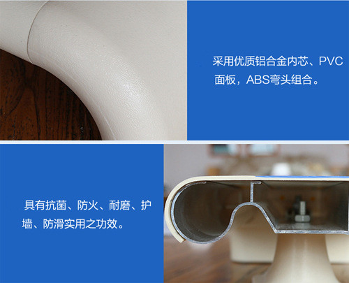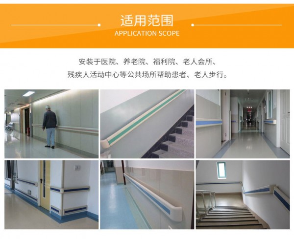 1、扶手采用高聚物外饰:PVC、ABS、防腐、抗菌、护墙防跌倒牢固可靠,美观实用
