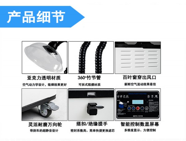 艾灸除烟去味净化设备是一款专业净化艾灸时产生的烟雾、异味、有毒有害气体的专业设备。其外观时尚、体积轻小、超级静音、省电环保,对烟雾吸收净化率可达到,配有双吸烟管道,吸烟管道可自由伸缩长短,吸烟角度可360度灵活调整,内置双层异味细菌过滤材料。