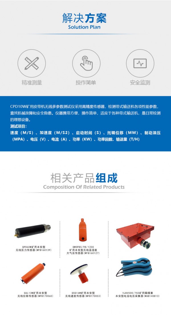 徐州矿一CPD10W 矿用皮带机无线多参数测试仪简介: