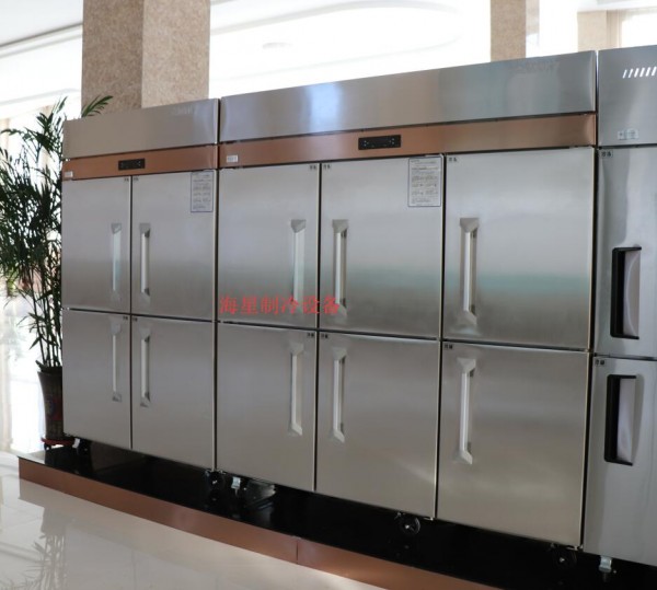 精细做工,欧式设计风格,高贵典雅,美观耐用;整体可抽取机组,并且四门冷柜很方便清洁。海星不锈钢四门六门商用冰柜,有保鲜 冷冻 以及双温三种功能可选,满足客户不同需要,不锈钢四门冷柜:设备整洁干净省电,噪音小,双温独特设计,郑州四门冷柜锁定不同厨房温配需求;铜管蒸发器,保障每步调温都能到位;