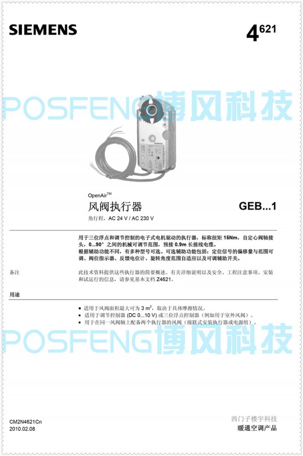 GEB331.1E 西门子开关量电动风门风阀执行器15NM驱动器]信息由会员[