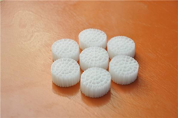 MBBR填料是一种生物活性载体,它采用科学配方,根据污水性质不同,在高分子材料中融合多种有利于微生物快速附着生长的微量元素,经过特殊工艺改性、构造而成,具有比表面积大、亲水性好、生物活性高、挂膜快、处理效果好、使用寿命长等优点。