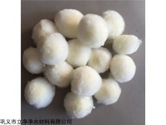 纤维球滤料是用优质涤纶纤维丝扎结而成,具有载污容量大、弹性效果好、不上浮水面、工作周期长、过滤效果好等优点,适用于各种水质的深度处理和精细过滤。