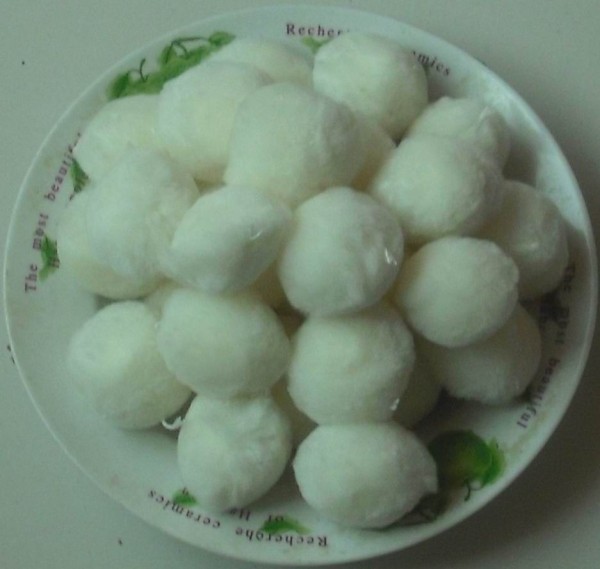 球体外观 白色球状 椭圆状 “彗星式纤维滤料”形象地说即为——颗粒状的滤料象彗星一样拖着长长的