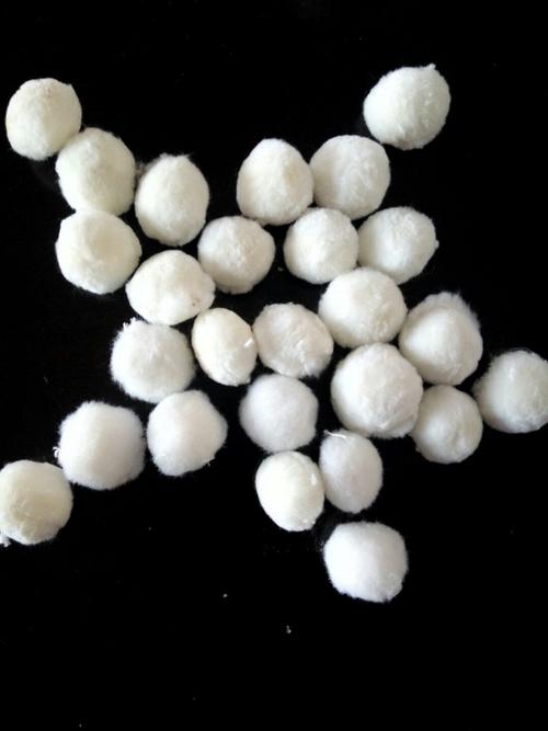 白色球状,椭圆状 纤维球滤料是由纤维丝扎结而成的,