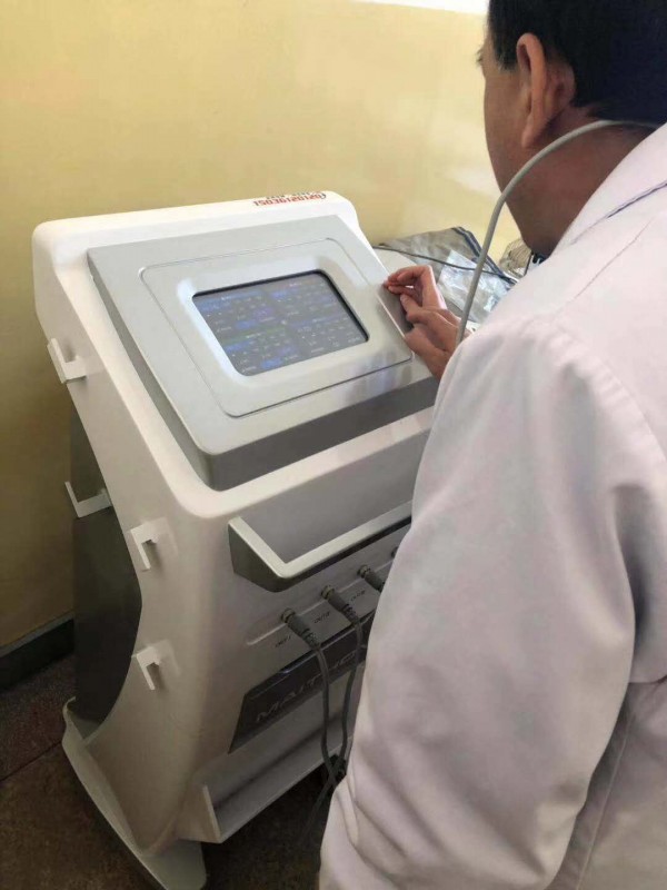 通过热疗和促进剂(水化剂、角质层剥离剂)的应用对皮肤进行预处理,加皮肤的通透性;通过脉冲电流使a-螺旋结构的多肽发生翻转形成平形排列,由无序性变为有序性,产生允许生物大分子药物通过的生物通道。人为造成药物通过的直接通道,使药物顺利通过。通过超声波导入的电泳作用和电趋向性,使药物粒子充分水化,以利于粒子的透皮转运。通过以上方法的协同作用促进了药物向体内有效转运。并结合中医经络理论,通过对相应穴道的刺激达到疏通经络、行气活血,扶正祛邪以达到提高人体免疫力的功效。