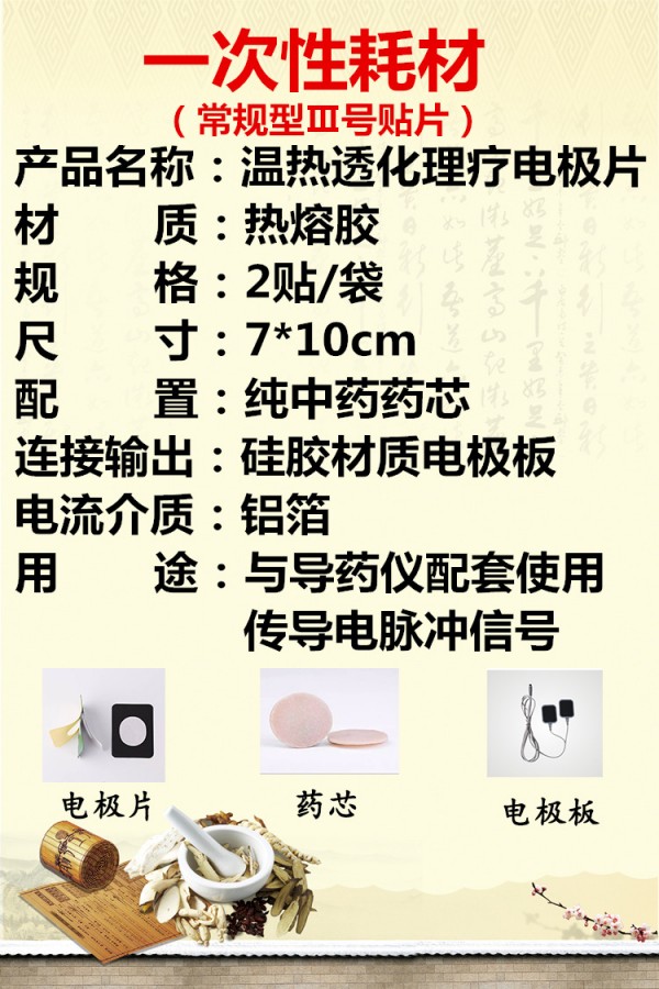 中药贴片配合中医定向透药治疗仪将离子化的药剂透过穴位、循经络直达病变部位,从而达到治疗疾病的目的,中药贴片融合了中医治疗、药物治疗、物理治疗等相关技术,完善了中医定向透药治疗方法。