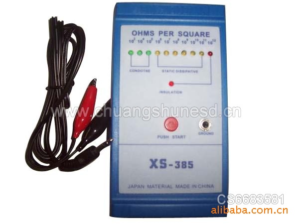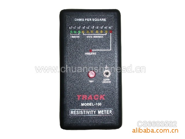 产品介绍:MODEL-100表面电阻测试仪是通过测量防静电产品表面的电阻,从而检测防静电产品的防静电能力,本仪器遵循ASTM标准D-257测试方法,测试时通过测试仪底部的两根平行铜电快捷地测试物体表面的电阻,只需放置在需要测量的物体表面及按下红色的按键,仪器上的十个103-1012LED将其中一个测试数值亮起,亮起的LED灯即为所测物体的表面电阻。