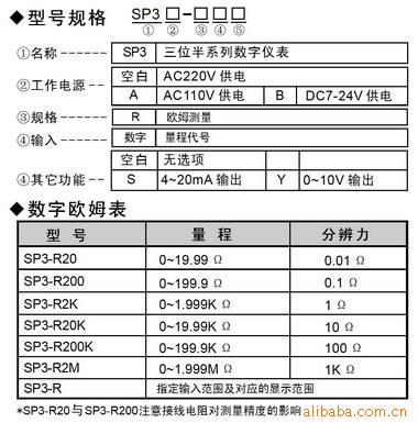 型号:SP3-R20 SP3-R200 SP3-R2K SP3-R10K SP3-R20K SP3-R200K SP3-2M SP3-R