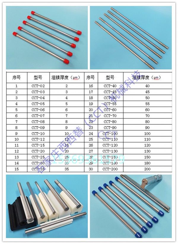 有关涂布棒涂布(线棒涂布)的介绍:计量棒俗称刮棒、线棒、涂布棒、钢丝刮棒,刮墨棒,涂膜棒,沟纹棒,光棒,施胶棒、迈耶棒,是将涂料在纸张、薄膜等基材上通过棒的刮涂使涂料在基材表面均匀分布并达到固定湿膜厚度的一种棒。计量棒应用于涂布生产线和实验室涂布。