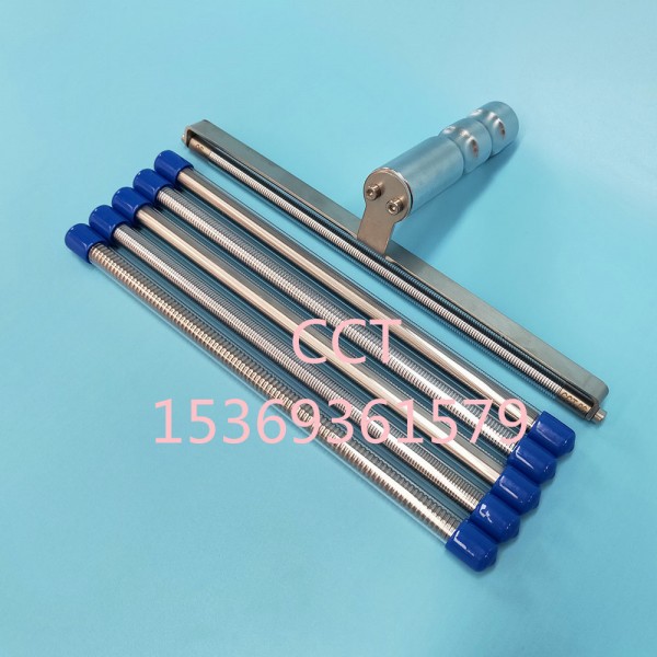 三、如何正确使用和保养涂布棒步:先准备好适当大小的底材供打样使用,确保底材表面平整,第二步:固定打样底材,如要求高可考虑配置压印床。第三步:选择合适型号的线棒,放在打样底材一端边缘。第四步:用于打样的流体放在涂布棒下方约1cm。(在同一位置转动涂布棒至流体均匀浇浸在棒上)第五步:用双手握住涂布棒两端,以恒定的速度和压力把涂布棒拉向操作人员自身的方向,请注意在操作过程中不要转动线棒。第六步:打样后,在流体干固前把涂布棒放进合适的溶剂里面清洗(不同打样的流体清洗用溶剂不同,实验人员对此更为清洗,用布抹干。请注意,应该使打样刮棒经常保持在干燥状态。
