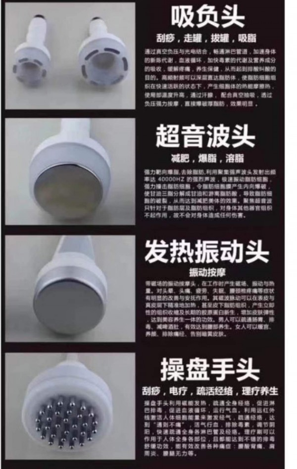 功能于一体,针对现代的亚健康状况,达到舒缓、理疗、美容等功能;通过真空吸引、