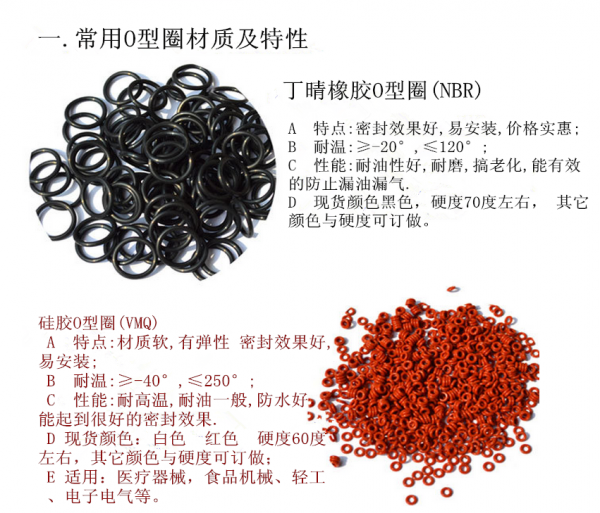 许多合成橡胶遇油会发生膨胀,或因工作油液中所含的添加剂作用而加速劣化。如果材料在某种介质中膨胀太大,或性能明显劣化,则说明这两种物质不相容。所以液压气动用丁晴耐油O型圈时,先考虑的就是材料与密封介质的相容性。液压用密封要考虑对工作介质的适应性;气动用密封也要考虑对润滑剂的耐性能。