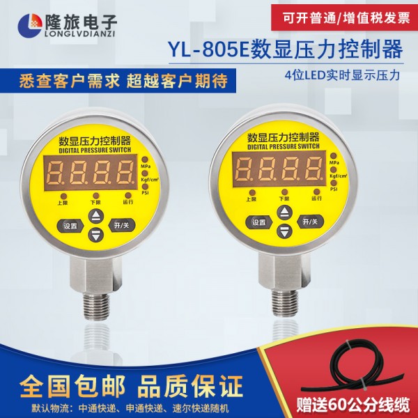 YL-805E压力控制器是一款60mm表盘,304外壳的数显压力控制器,集压力测量、显示、控制于一体的智能控制器, 主要应用为各类水处理系统、机电设备自动化、工程机械、医疗设备等行业全自动控制运行。