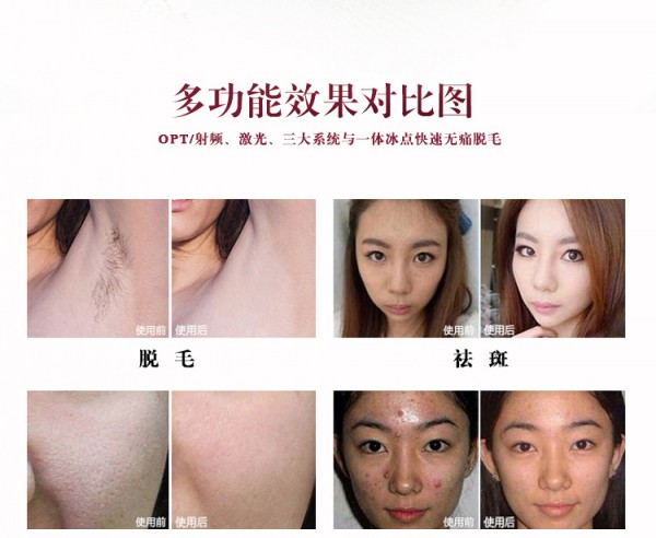 opt脱毛仪器厂家使用说明书 无痛冰点脱毛、2.祛斑、3.光子嫩肤