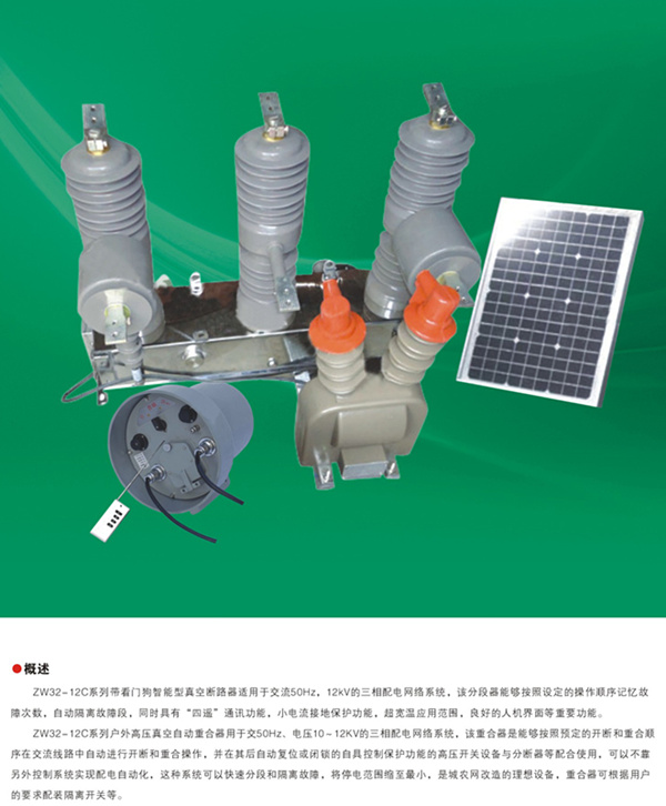 5、断路器的分、合闸操作可采用手动或电动操作及远方遥控操作。可与智能控制器配套实现配电自动化,也可以与重合控制器配合组成自动重合器、分段器。