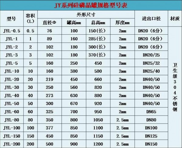 产品特点:较简易型的硅磷晶罐耐压更高,价格略高于简易型 。