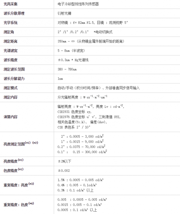 ■ 量程宽广。量程为 (0.0005 - 300,000cd/m²)