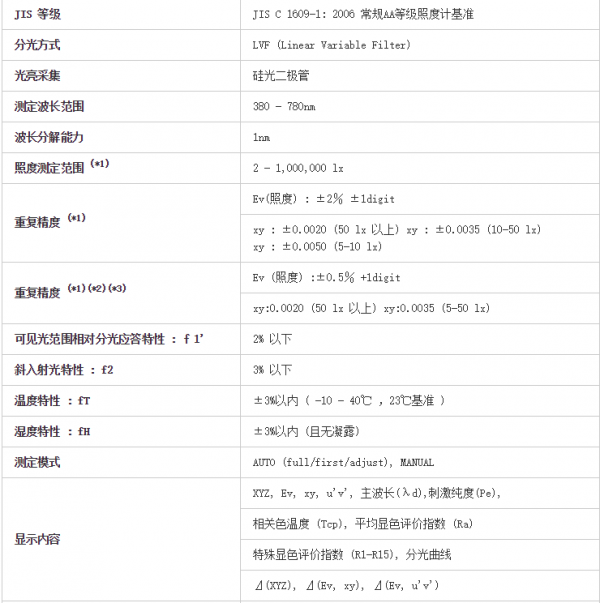 ■ 精度高・稳定性好 : JIS C1609-1-2006 常规AA等级照度计基准