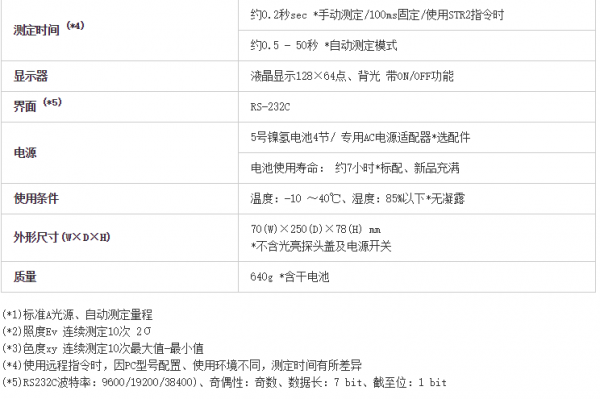 分光照度计IM-1000R日本TOPCON拓普康特征■ 精度高・稳定性好 : JIS C1609-1-2006 常规AA等级照度计基准