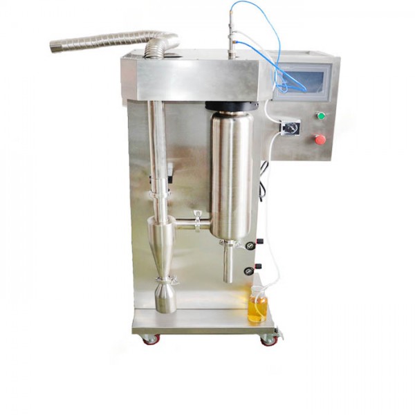 有机溶剂喷雾干燥机内置进口全无油空压机,喷粉的颗径呈正态分布,流动性非常好,而且噪音非常低,小于60db,符合实验室噪音标准;