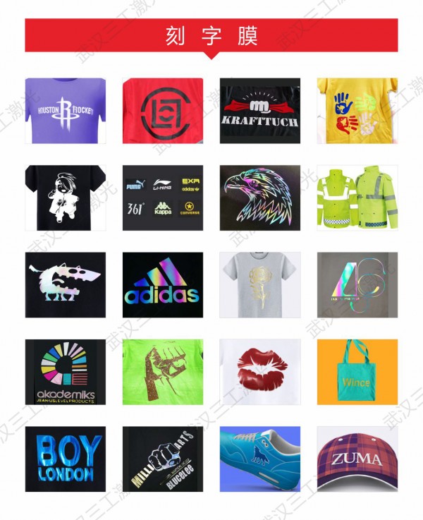 适用于运动服饰、休闲服饰、童装、特种服饰、衣帽、鞋业、等行业的激光打标和模切。