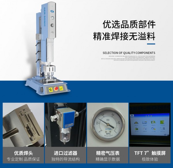 超声波塑料焊接机具有能量、时间、距离等焊接模式,可通过触摸屏设定气压、下降速度等一系列参数,焊接历史数据可直接上传服务器等功能。可以满足当今医疗,汽车,净水,包装和消费电子等行业对一致性、可追溯性和安全性的要求。