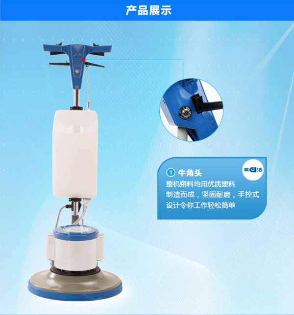 5、 集洗地、洗地毯、起蜡、低速抛光等多功能于一体,满足不同的工作需求。