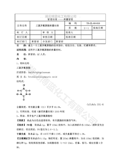 三氯异氰脲酸生产厂家;价格行情;原料生产企业;生产厂家;原料供应商;哪里有卖的;湖北武汉生产厂家;