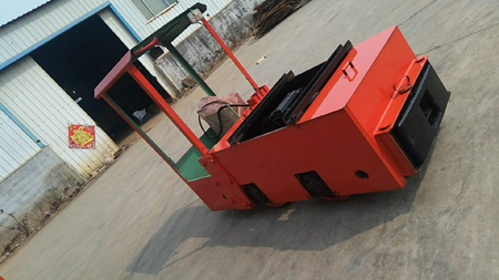 该车是轨道车辆运输的一种牵引设备,动力是利用牵引电机驱动车轮转动,借助车轮与轨面间的摩擦力,使机车在轨道上运行。这种运行方式,它的牵引力不仅受牵引电机(或内燃机)功率的限制,还受车轮与轨面间的摩擦制约。机车运输能行驶的坡度有限制,运输轨道坡度一般为3‰,局部坡度不能超过30‰。