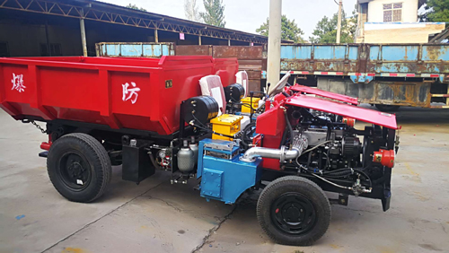 防爆四轮车是一种以柴油机为动力、机械传动、四轮驱动、前后机架中央铰接、全液压转向的煤矿井下无轨胶轮运输机械,主要用于煤矿井下运输作业。该车具有操作方便、转弯半径小、爬坡能力强、污染低等特点。 该车型有基本型和低矮型,低矮型适合薄煤层的运输作业。另外,通过改变车架和车厢形式可以转换成平板车、自卸车、人车等,其中自卸车又有后翻自卸和平推自卸两种形式。 该车设计新颖、结构合理、运行稳定、经济实用、高。
