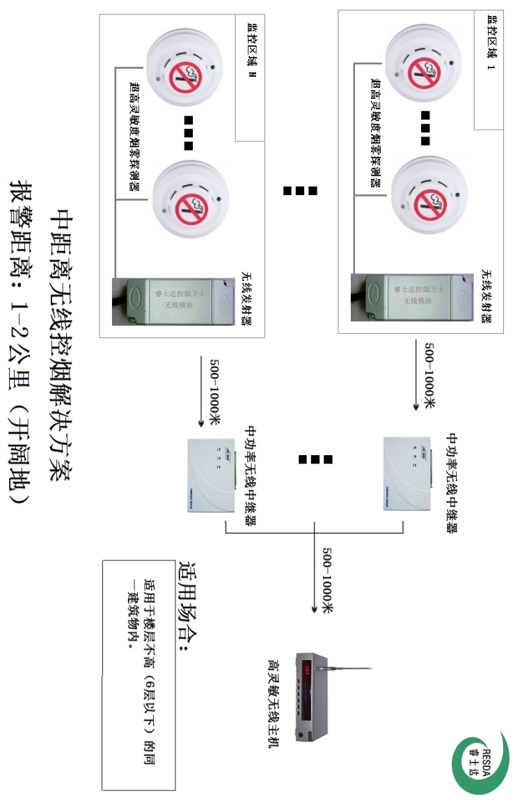 亲,请注意:由于无线易受周围环境影响,无线设备的选择需要结合客户的具体环境,如果有疑问,请与客服联系。我们的方案都是经过几十家不同类型客户,总结出来的。目前,大多数客户都是用于卫生间控烟,卫生间一般分布距离较大,我们的方案小距离都是在500米(开阔地)以上,高距离可达13公里(开阔地),非那种100米的可以相比的。