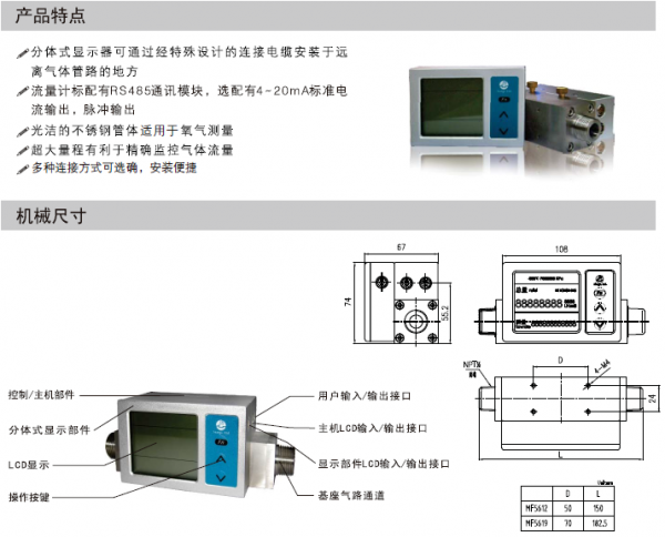 MF5600系列质量流量计专门为需要显示器和表体分离的应用需求而设计的。例如医院供氧系统小型空分系统。该流量计的标准工业用户界面(RS485/4~20mA)及用户自定报警功能更好实现的异地或网络监控。现有的产品是MF5612和MF5619可分别测量0-300SLPM和0-800SLPM气体流量。 有什么技术请联系迪川仪器仪表有限公司, 85550363