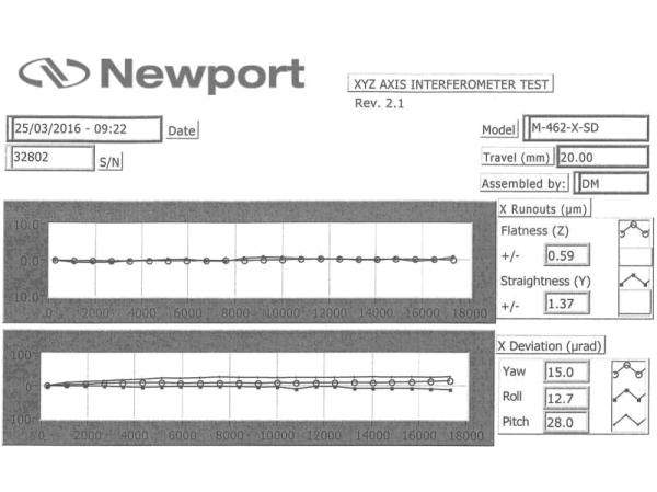 每个 ULTRAlign 不锈钢交叉滚子位移台经过单独测试,以确保其满足小于 100 µrad 角度偏差要求。我们不是说说而已,而是能够提供切实的保证。每个位移台都附带真实测试结果。