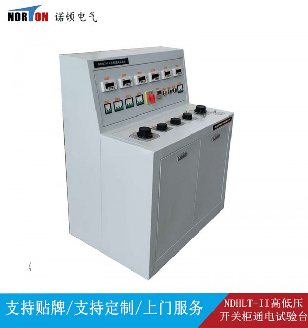 NDHLT-II高低压开关柜通电试验台用于高低压开关柜生产厂家对所生产的高低压开关柜进行出厂前的各项通电试验。它能提供各种交、直流电源,便于对开关柜的检测,提高工作效率。