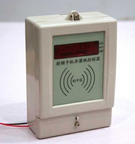 控制器采用了当今的微电脑技术、射频卡技术、自动控制技术和防雷击保护技术,带有数码管显示,采用射频卡收费,一机多卡,卡内余额用完自动停泵,射频卡机井灌溉控制器和电表、交流接触器等安装在一个机箱内,构成射频卡机井灌溉控制装置,如果需要计量用水量,要在机井的出水口处安装一块远传水表。
