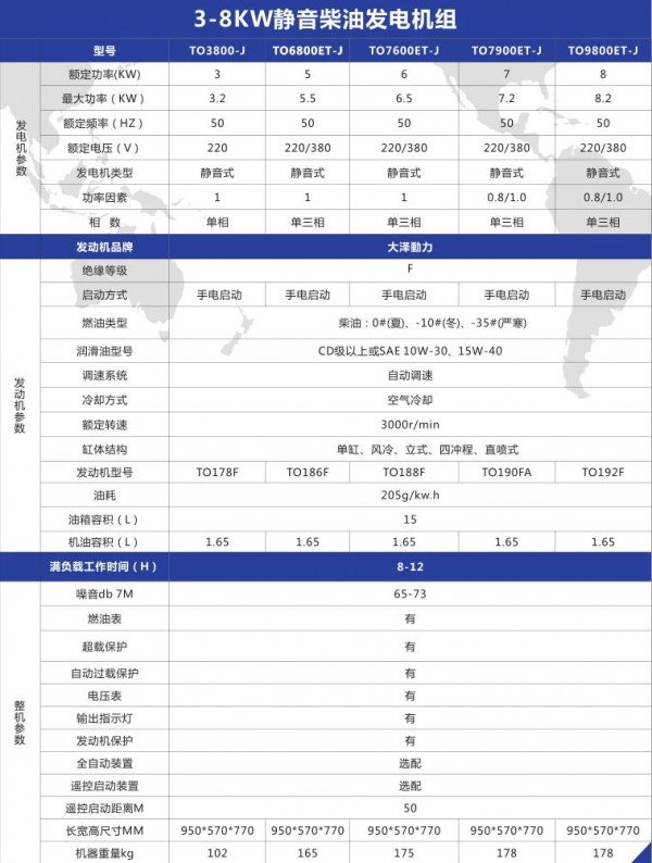 6千瓦小噪音发电机动力强劲 油耗低大泽发电机组的设计、生产和测试完全符合GB/T2820-97的标准及ISO8528柴油发电机组行业标准
