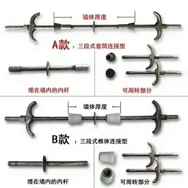 .穿墙螺杆又称为对拉螺杆,双头螺杆,高强度穿墙螺杆,它的材质:Q235,全钢材,形状也就是两头有丝牙,其丝牙宽度可分为3MM,6MM,8MM,10MM,依穿墙螺杆的直径,可分为12MM.14MM,16MM,可根据建筑本身的实际需求定制。