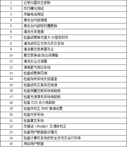 仪器的常规保养、操作人员的培训、仪器故障的解决、电子系统故障排查、仪器重新标定、增加通道。