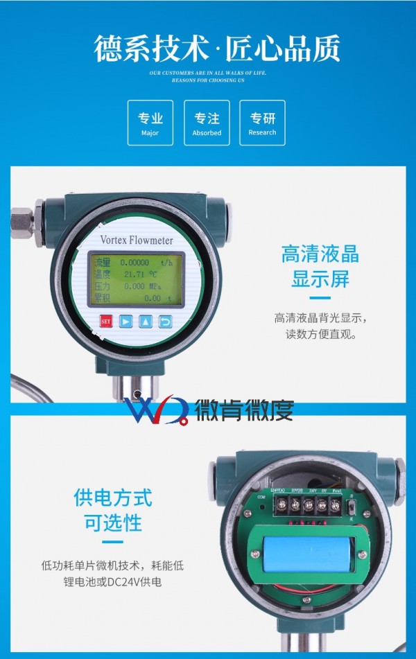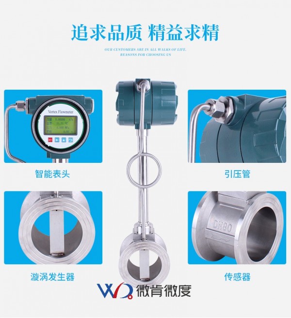 大连微肯LUGB蒸汽涡街流量计广泛适用于石油、化工、冶金、热力、纺织、造纸等行业对过热蒸汽、饱和蒸汽、压缩空气和一般气体(氧气、氮气、氢气、天然气、煤气等)、和液体(水、汽油、酒精、苯类)的计量和控制。