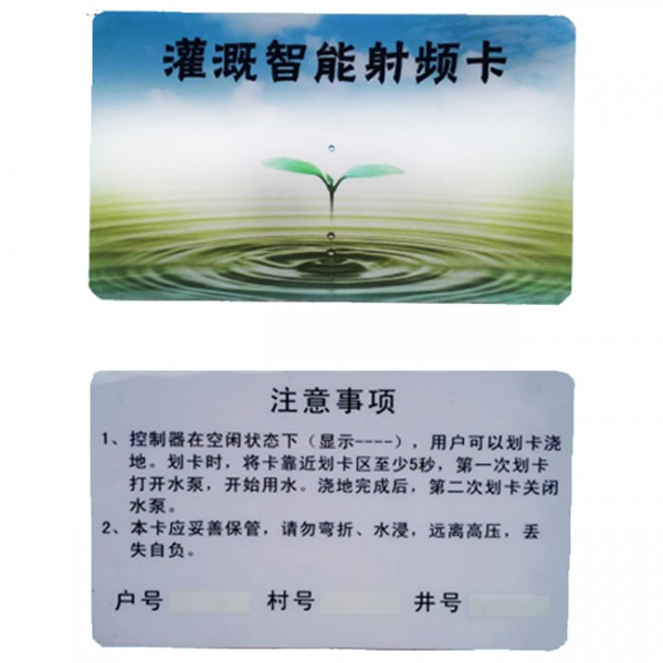 射频卡灌溉控制器在使用前,一定要用设置卡对控制器进行初始化设置,包括设置控制器的村号和表号、计电型的电表常数或计时型每小时电价和报警下限,为了使不同村的射频卡不能相互使用,不同村的控制器的村号和表号都要设置不同,以免别村人员来使用。