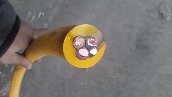 10、成缆:3个主线芯1个地线围绕半导电橡皮垫芯按右向绞合成缆。