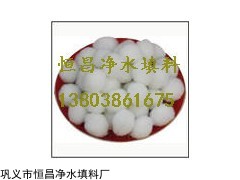 纤维球是由纤维丝结扎而成的。它与传统的钢性颗粒滤料不同,具有弹性效果好,不上浮水面,空隙率大。在过滤过程中,滤层空隙沿水流方向逐渐变小,比较符合理想滤料由上大到下小的孔隙分布,具有效率高,滤速快20-50m/h,截污溶量大,过滤效果好,可再生,使用成本低,广泛适应于电力、石油、化工、造纸、医药等各种水质的过滤。