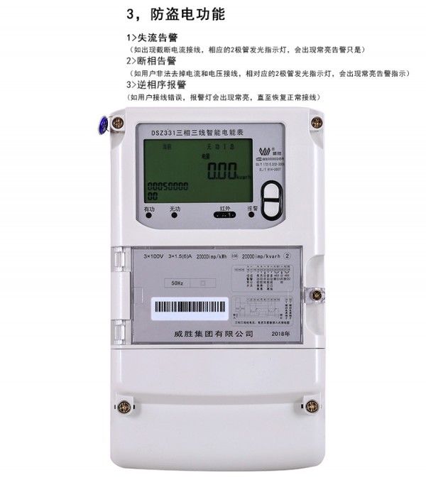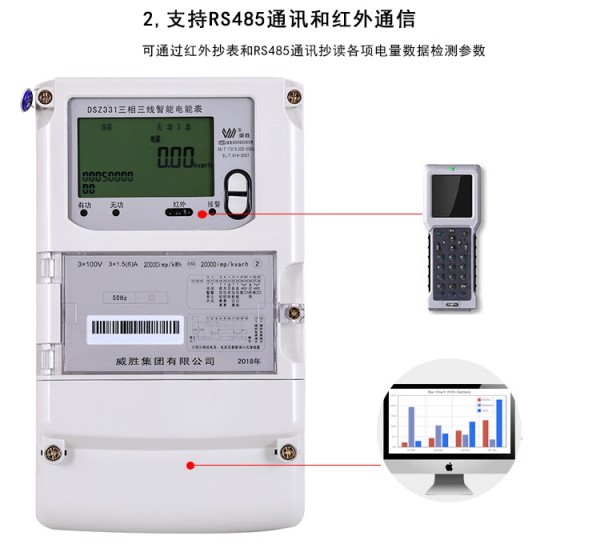 品牌型号:长沙威胜DSZ331三相三线0.2s级100V国网电表 分时复费率电表