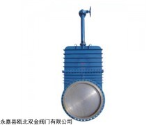 伞齿轮暗板刀闸阀产品属性:型号:DMZ573X/H连接方式:法兰主体材料:铸钢公称通径:DN50-DN1200适用介质: 纸浆、污水、煤浆、灰、渣水混和物材质:铸钢密封材料: 橡胶 标准:国标外形:中型流动方向:单向驱动方式: 手动,电动,气动,液动,伞齿轮,电液动 用途:截止压力环境:低压工作温度:常温类型(通道位置):