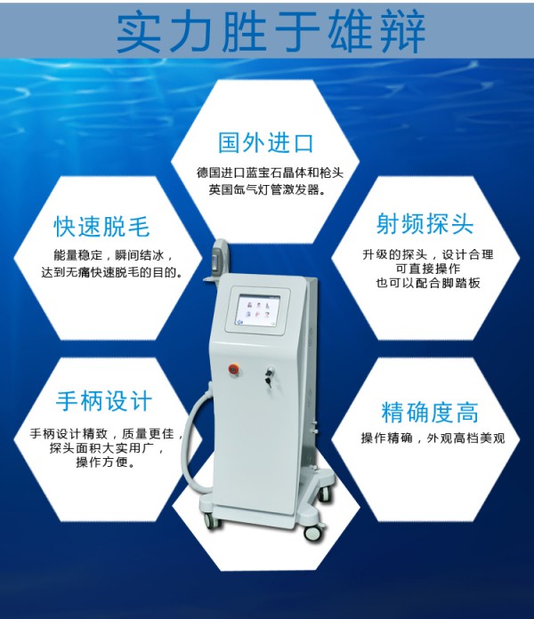 。RF技术提供的能量几乎均匀加热整个皮肤层,而此时联合应用IPL的选择性光热原理可以强化嫩肤、祛斑和脱毛的效果,在患者无明显痛感和副作用的情况下轻松实现皮肤重建和脱毛