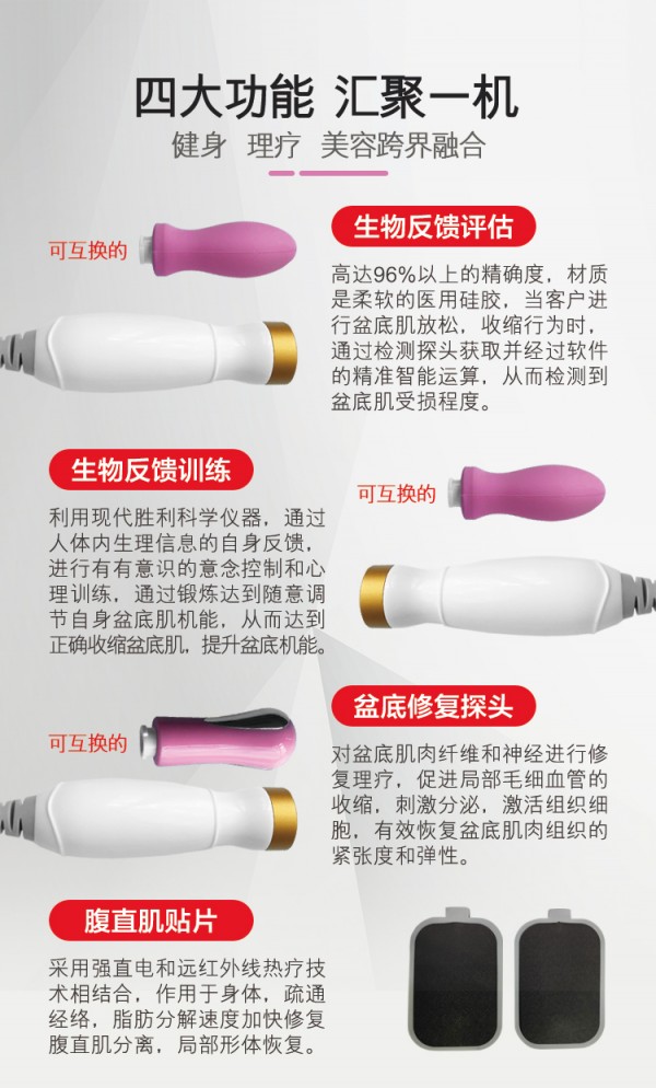 多功能盆底肌腹直肌修复仪产后修复的市场非常的大,提倡二胎,每天都有生孩子的,医院也提倡产后修复,美容院在做,健身房在做,母婴店在做,家政在做,月嫂在做,兼职在做,相反有些产后修复中心还后知后觉,等别人挣钱再做,等市场都饱和了再去做,到时候你还有吗?市场还是你的吗?产后修复项目,收益多,好