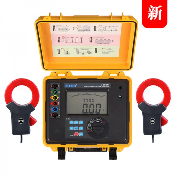 ETCR3200C双钳多功能接地电阻测试仪 广泛应用于电力、电信、气象、油田、建筑、防雷及工 业电气设备等的接地电阻、土壤电阻率、接地电压、交流电流、漏电流测量。