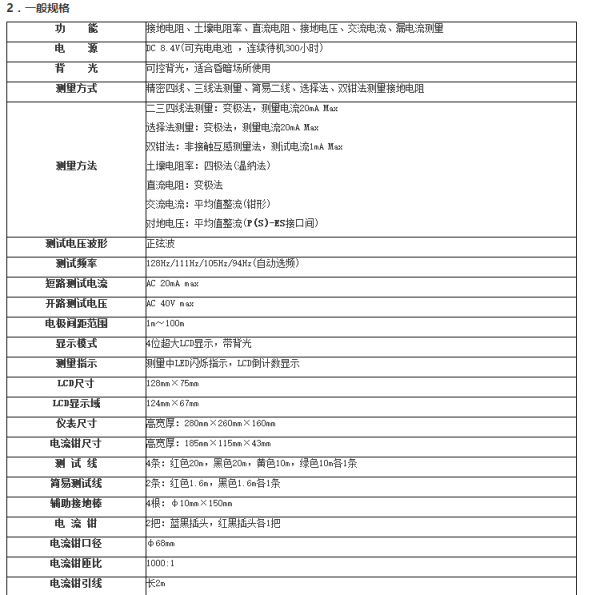 接地等各种复杂接地情况的任意接地电阻值,并联接地测量时无需断开任何并联接