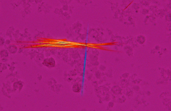 通过改变干扰色可以识别尿酸结晶在有机体中的形成,非常适合痛风和假性痛风测试。
